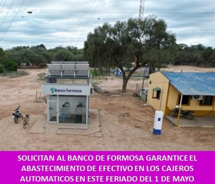 SOLICITAN AL BANCO DE FORMOSA GARANTICE EL ABASTECIMIENTO DE EFECTIVO EN LOS CAJEROS AUTOMATICOS EN ESTE FERIADO DEL 1 DE MAYO